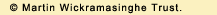 | Online selection from a collection of English translations of Martin Wickramasinghe's short stories | Audio clips - These audio clips of Martin Wickramasinghe's voice have been selected from audio tape recordings of interviews for broadcast both locally and in other countries. They have been recorded some 30 - 50 years ago. Despite the age of the recordings the voice that comes over is authentic. |